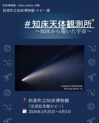 星空を覗いてみると、そこには果てしない宇宙の広がりが感じられます。全国屈指の知床の星空を切り取った、天体写真展です。会期は2月25日(水)から4月5日(日)まで、交流記念館ロビーにて開催中です。 期間中は展示の企画制作を …